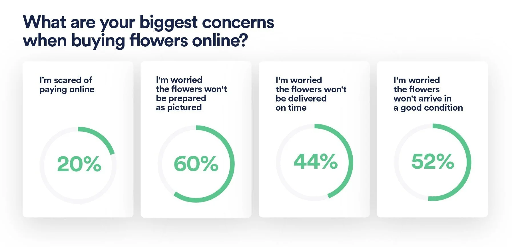 88% of the users ordered products online before while 62% never bought flowers online but they find it very convenient and 77% preferred to visit a one-stop shop for flowers and other gifts.